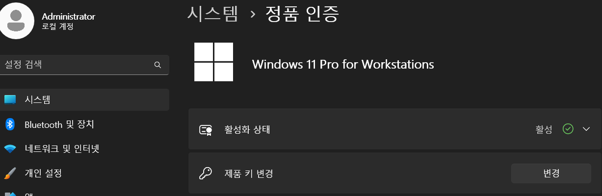 사용자 이름은 "Administrator" 로 입력되어 있고, 관리자권한으로 설치되어 있습니다. 이번 버전의 파티션 구성은 MBR/UEFI 공용이며, VHD 동적할당 25GB로 만들었습니다. 제가 작업하여 배포하는 버전의 기본 베이스는 위에 "홍차" 님 블로그에 올라온 자료를 기본으로 작업합니다.