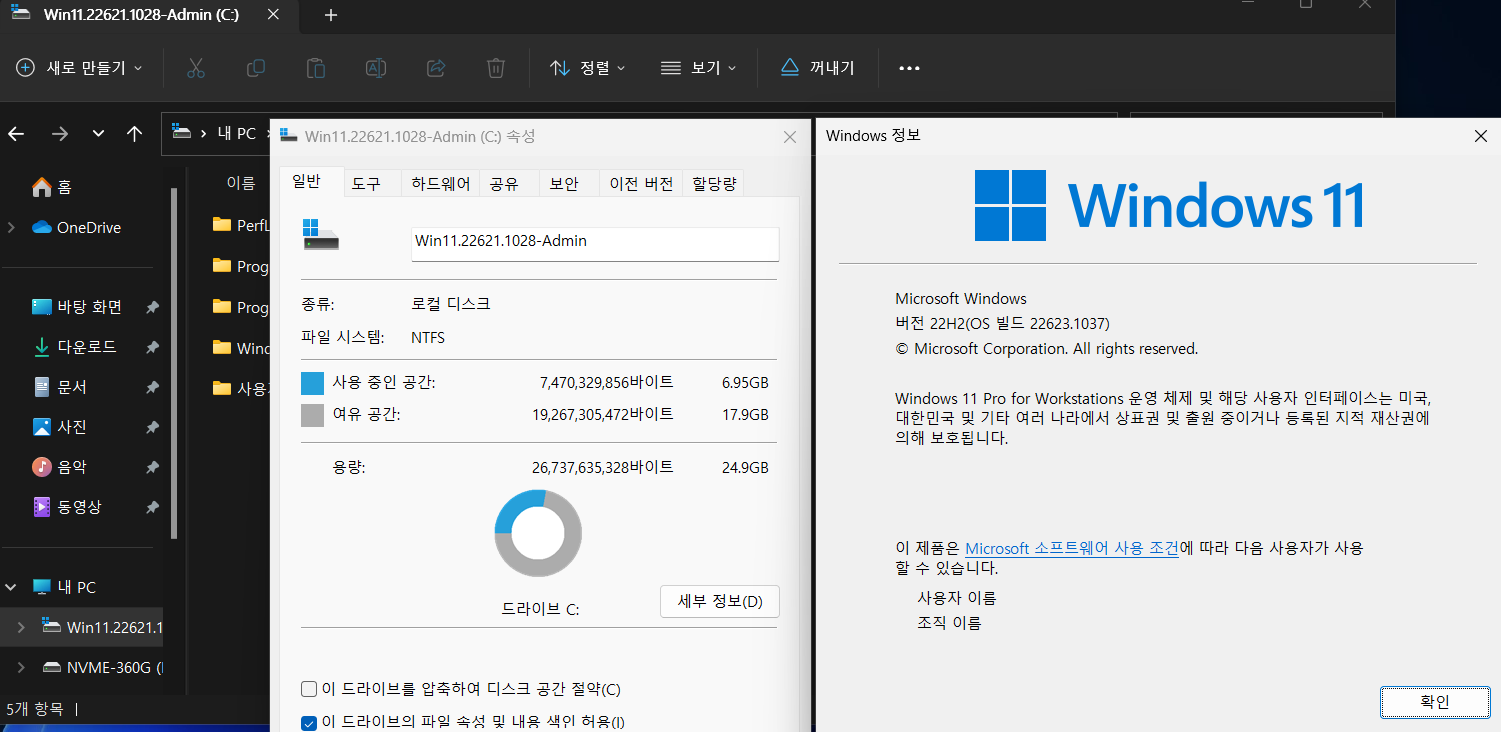 1. Win11.22623.1037-Admin.VHD 파일은 기존 22621.1028-25GB-Admin.VHD 파일을 기준으로 22623.1037 수동업데이트하여 윈도우 설치만 완료된 VHD 파일입니다.