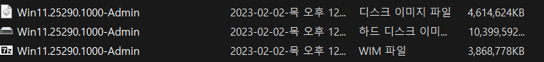 2. Win11.25290.1000-Admin.WIM 파일은 1번 25290.1000-Admin.VHD 에서 추출한 WIM 파일입니다.