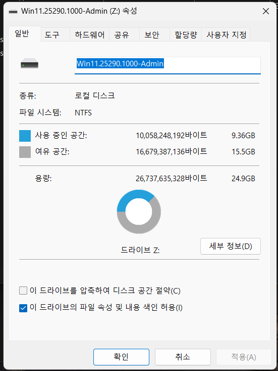 3. Win11.25290.1000-Admin.ISO 파일은 2번에서 추출한 WIM 파일을 통합하여 적용된 ISO 파일입니다.