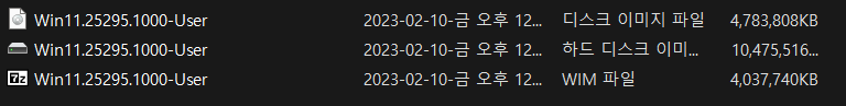 2. Win11.25295.1000-User.WIM 파일은 1번 25295.1000-User.VHD 에서 추출한 WIM 파일입니다.