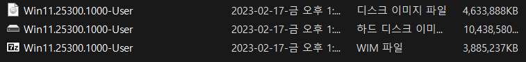 2. Win11.25300.1000-User.WIM 파일은 1번 25300.1000-User.VHD 에서 추출한 WIM 파일입니다.
