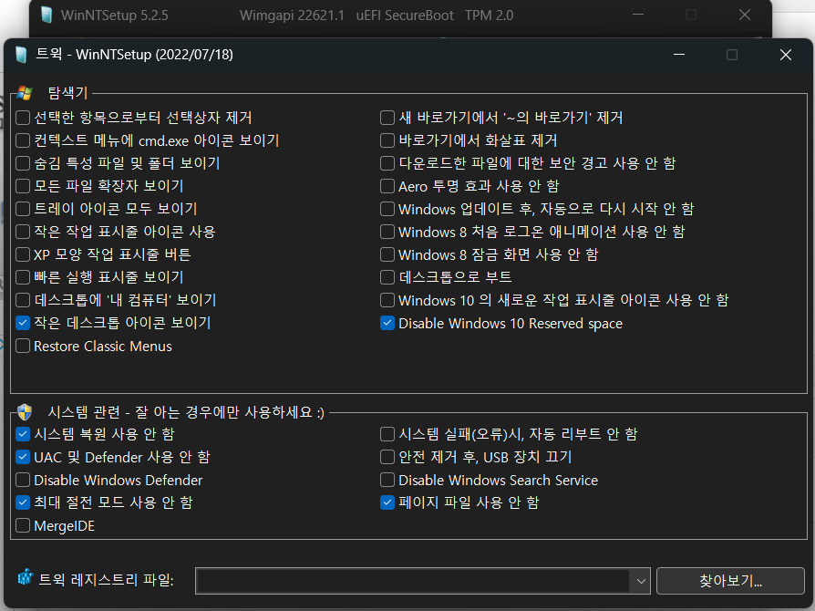 사용자 이름은 "User" 로 입력되어 있고, 관리자권한으로 설치되어 있습니다. 이번 버전의 파티션 구성은 GPT/UEFI 버전이며, VHD 동적할당 25GB로 만들었습니다. 제가 작업하여 배포하는 버전의 기본 베이스는 아래 "홍차" 님 블로그에 올라온 자료를 기본으로 작업합니다.