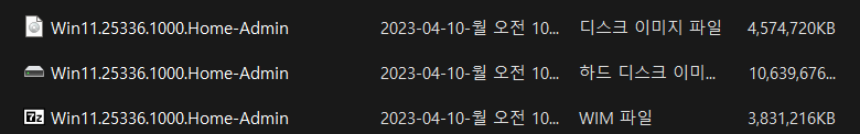 2. Win11.25336.1000.Home-Admin.WIM 파일은 1번 25336.1000.Home-Admin.VHD 에서 추출한 WIM 파일입니다.